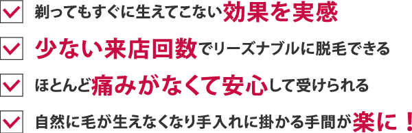 痛みも肌への負担も少ない